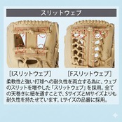 選手の身体の一部になる操作性をコンセプトに、翼と空気をイメージして軽量感と柔軟性を徹底的に追求した、軟式ジュニア用グラブシリーズ。