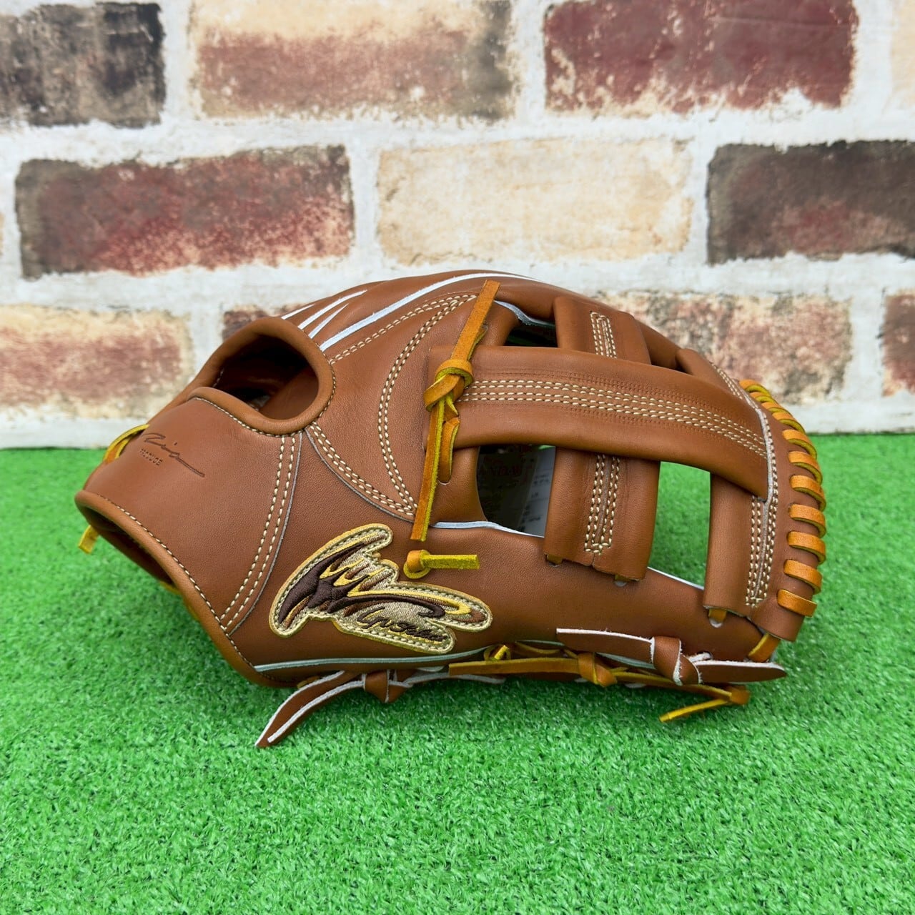 大引啓次モデル。手の平の中心よりやや下を軸に、親指・小指をはじめ指全体の安定感、身体の一体感を生み、安定した守備へと導き出す。