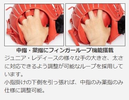 ジュニア・レディースの様々な手の大きさ、太さに対応できるよう調整が可能なループを採用しています。